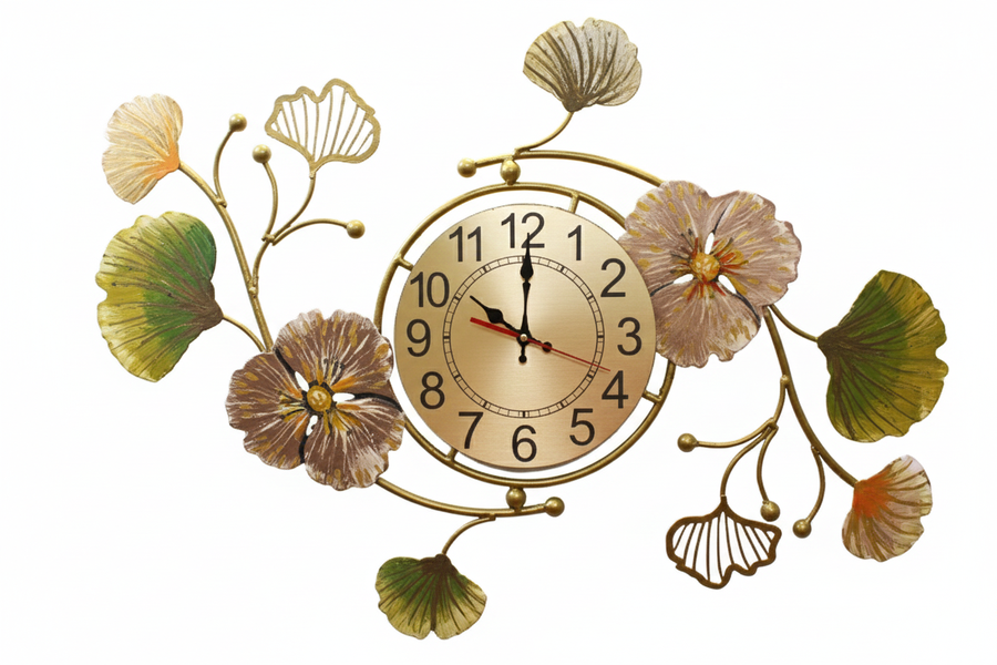 ساعة حائط معدنية بتصميم زهري فاخر - لمسة أناقة تزيّن كل ركن في منزلك