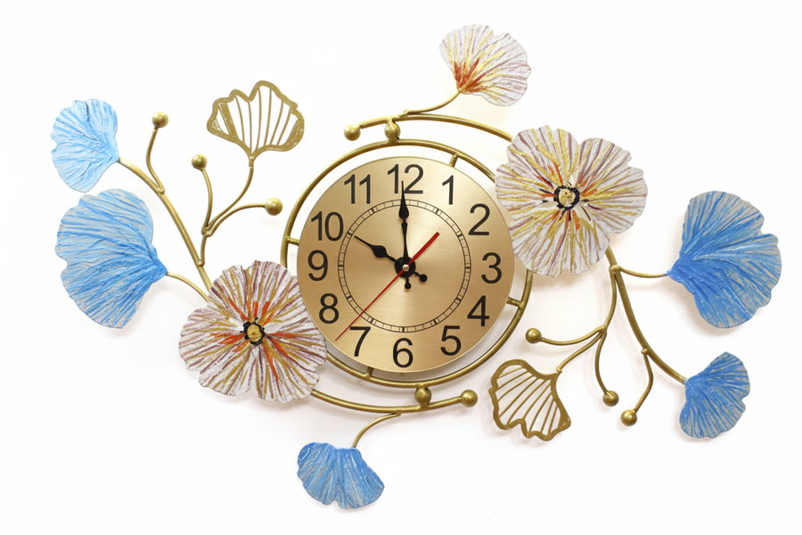 ساعة حائط معدنية بتصميم زهري فاخر - لمسة أناقة تزيّن كل ركن في منزلك