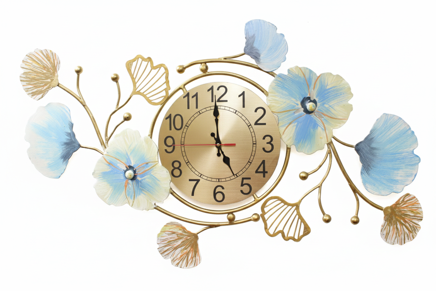 ساعة حائط معدنية بتصميم زهري فاخر - لمسة أناقة تزيّن كل ركن في منزلك